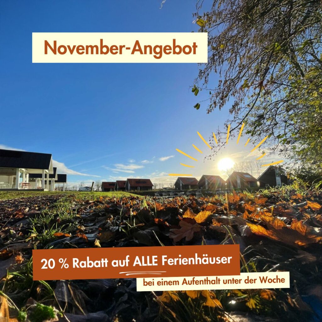 Während des gesamten Monats November profitieren Sie von einem Rabatt von 20 % auf ALLE Ferienhäuser bei einem Aufenthalt unter der Woche.
